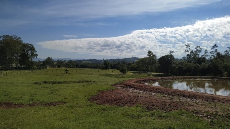 Lindíssima área de 7,5 ha em ótima localização, de frente para o asfalto. Com mata nativa, açude, vertente, arroio.