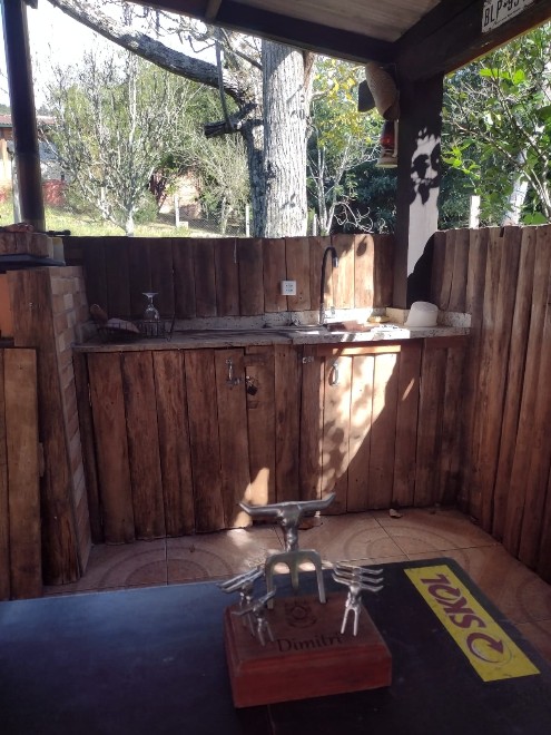 Casa em alvenaria, possuindo 3 dormitórios, sala e cozinha em conceito aberto, lavanderia, garagem com churrasqueira. Terreno com metragem de 1.000m², com linda mata nativa, pomar e horta. Possui um canil e um quiosque. Conta ainda com sistema fotovoltáico para geração de energia elétrica. Ficam a maioria dos móveis. O condomínio conta com ótima infraestrutura, salão de festas, campo de futebol, quiosques, frutíferas e cachoeira.
