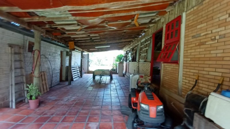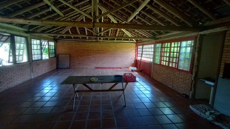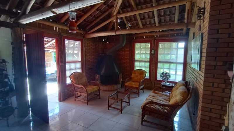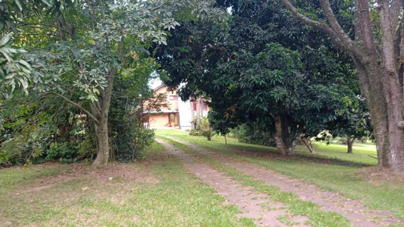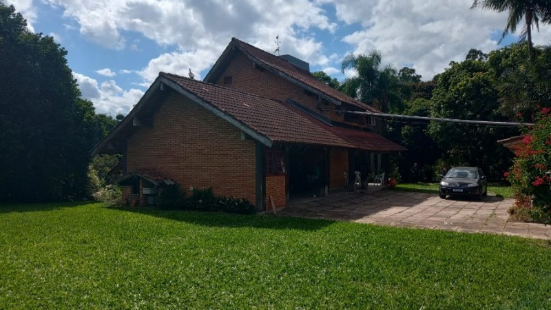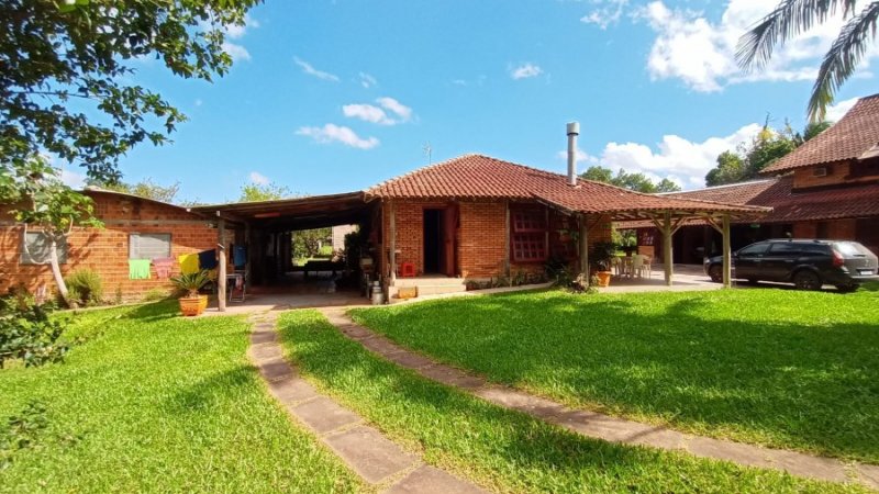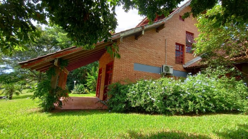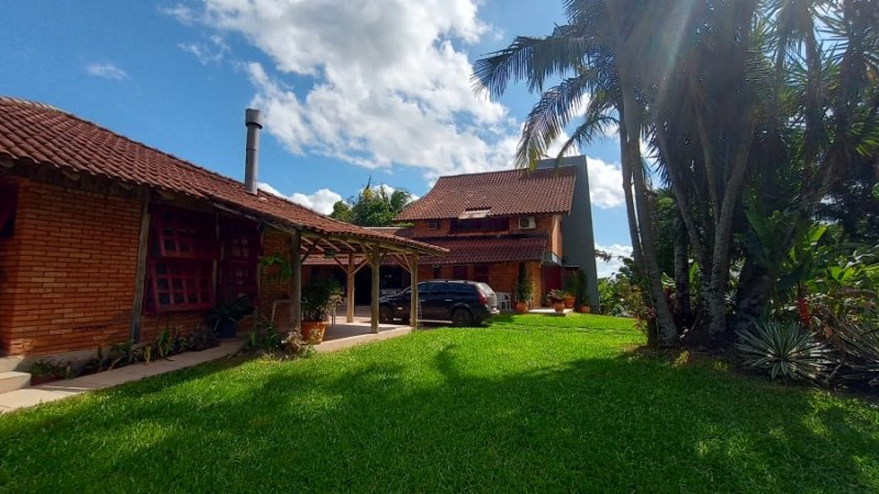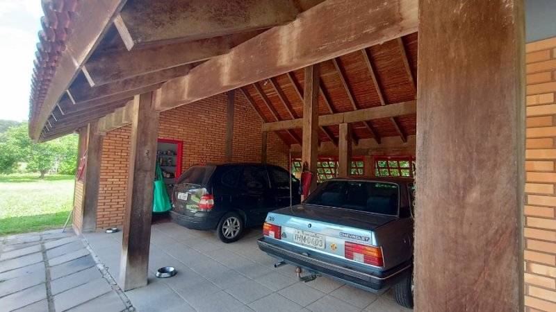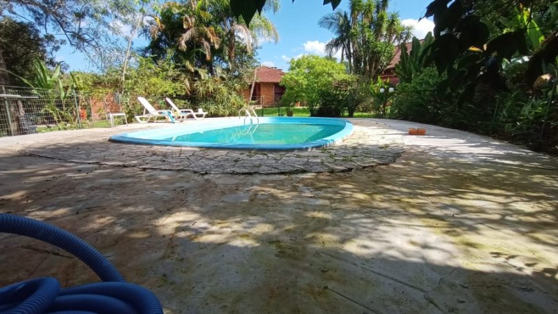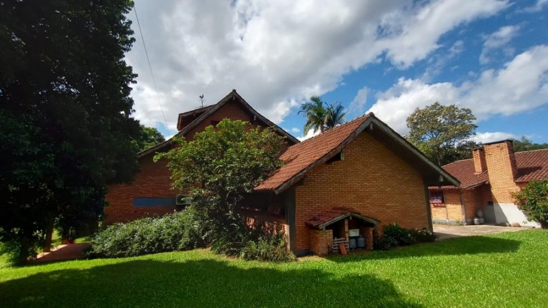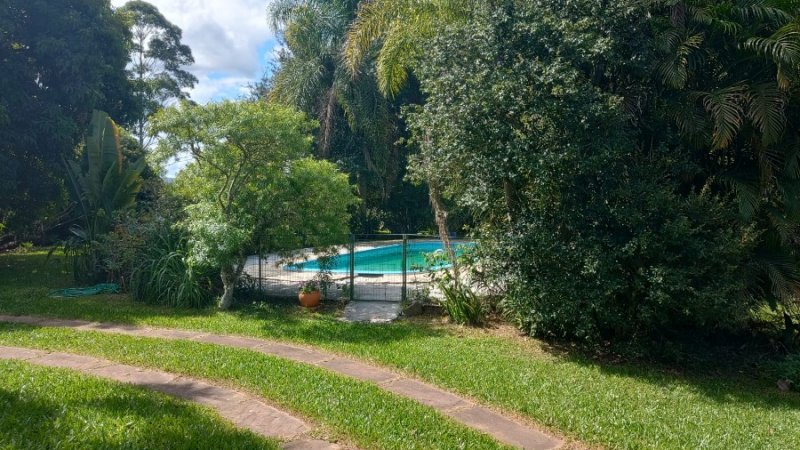 Belo sítio de 2 ha. Possui uma casa em alvenaria, tijolo à vista, parede dupla com isolamento, 3 dormitórios, sendo 1 suíte com sacada, banheiro com hidro. Sala estar, jantar em desnível, com lareira. Sótão. Cozinha com balcão. Salão de festas com 1 dormitório, banheiro, lareira. Piscina. Frutíferas. Mata nativa. Cercado.