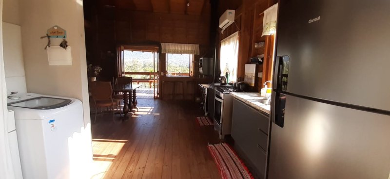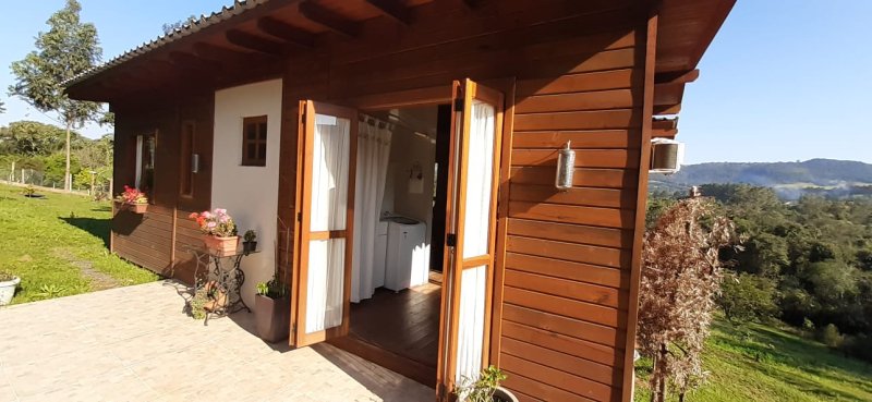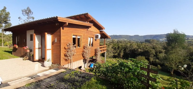 Venha desfrutar de um espaço planejado para descansar em meio à natureza e contemplar uma vista paradisíaca! A cabana possui 72m², com um deck espaçoso, perfeito para relaxar e desfrutar de uma vista deslumbrante! Cozinha e sala de estar se unem harmoniosamente, proporcionando um ambiente acolhedor, com janelas amplas que garantem a entrada de luz natural e uma atmosfera acolhedora e arejada. A cozinha está equipada com fogão à lenha e geladeira, entre outras comodidades. A cabana conta com 1 dormitório, 4 camas e 1 banheiro. Com um design rústico e moderno, combina conforto e estética.  A área possui 10.000m², com jardins, pomar, riacho de águas límpidas e trilha privativa para caminhada. Lugar tranquilo, propício para quem busca um contato profundo com a natureza, sem abrir mão do conforto.  Agende sua visita!