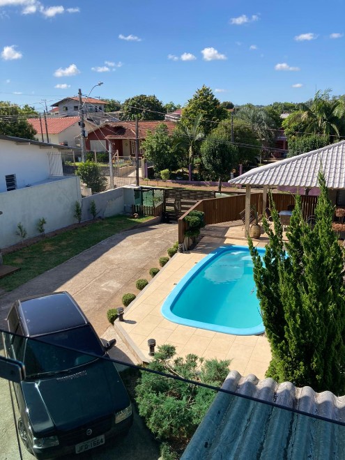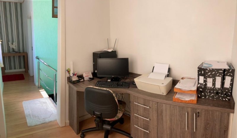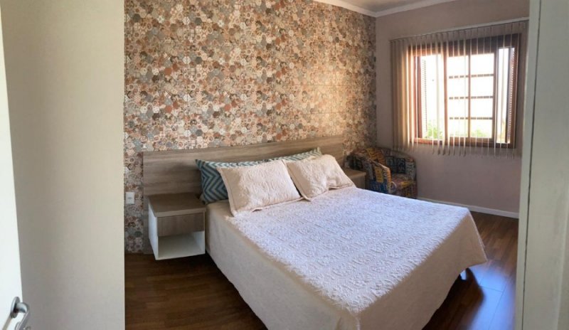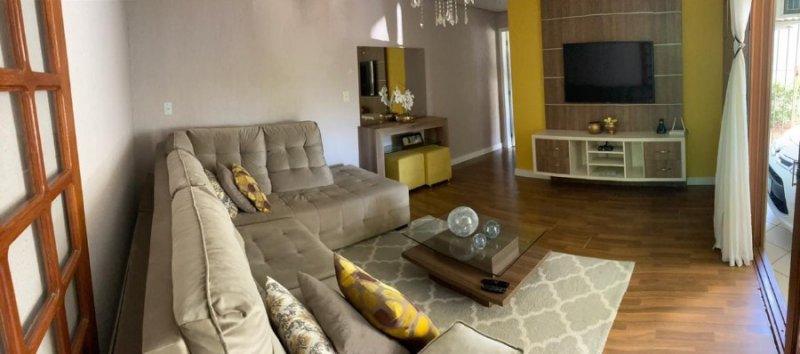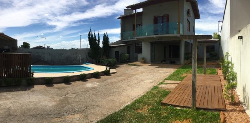 Linda casa em alvenaria semimobiliada, em dois pavimento, de 208m², com habite-se, 3 dormitórios com piso em vinílico, 3 banheiros, cozinha, sala de estar e jantar, área de serviço, escritório, escadaria interna em granito, garagem par 2 carros, piso frio, portão eletrônico, sacada envidraçada, churrasqueira, quiosque com banheiro, piscina com piso antiderrapante. Telhado com manta asfáltica, terreno de 360m², sendo 12m x 36m. Linda rua de calçamento e arborizada.