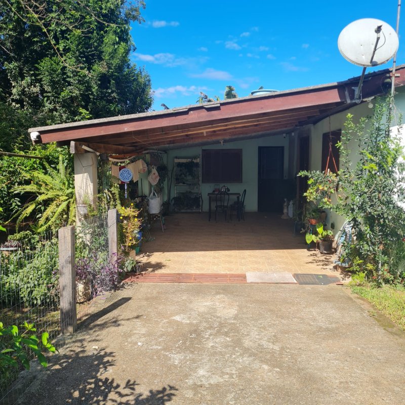 Casa com 110m², possui 2 dormitórios, sala e cozinha integradas, área de serviço, depósito e garagem coberta. O terreno possui 720m², todo cercado e arborizado. Próximo à ponto de ônibus, comércio e escola. Avalia apartamento na Feitoria.