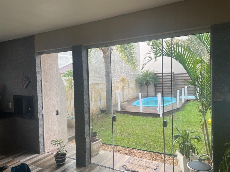 O terreno possui 300m², com linda área de festas, piscina e churrasqueira.