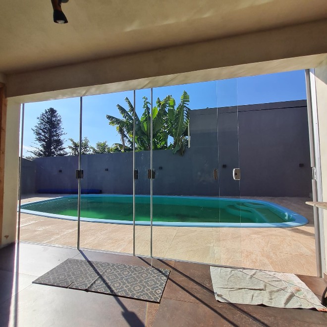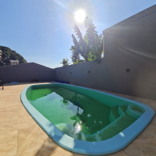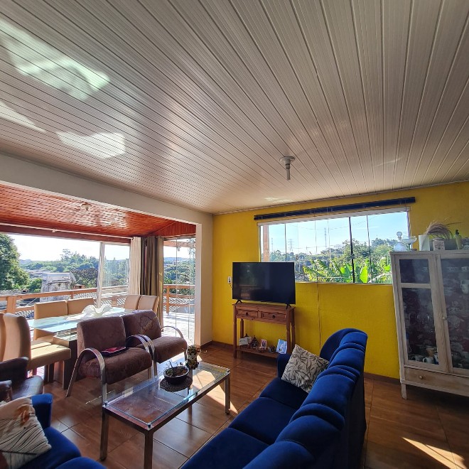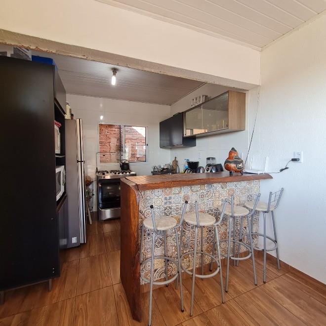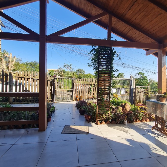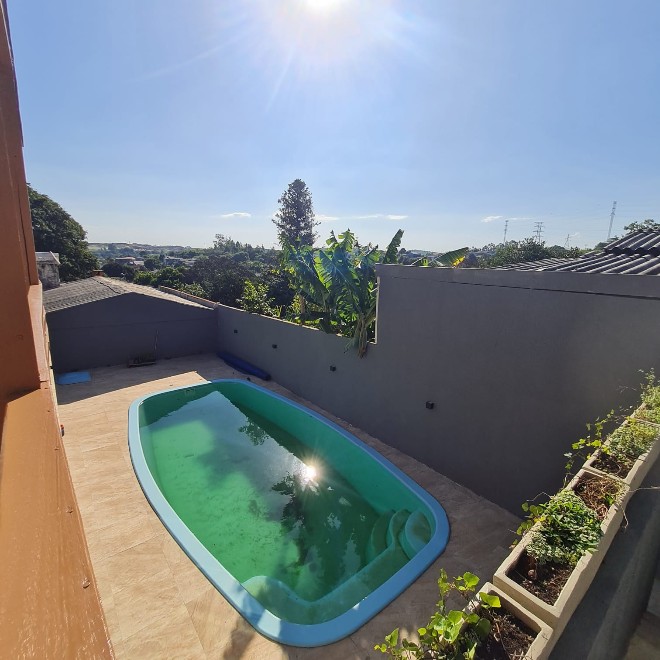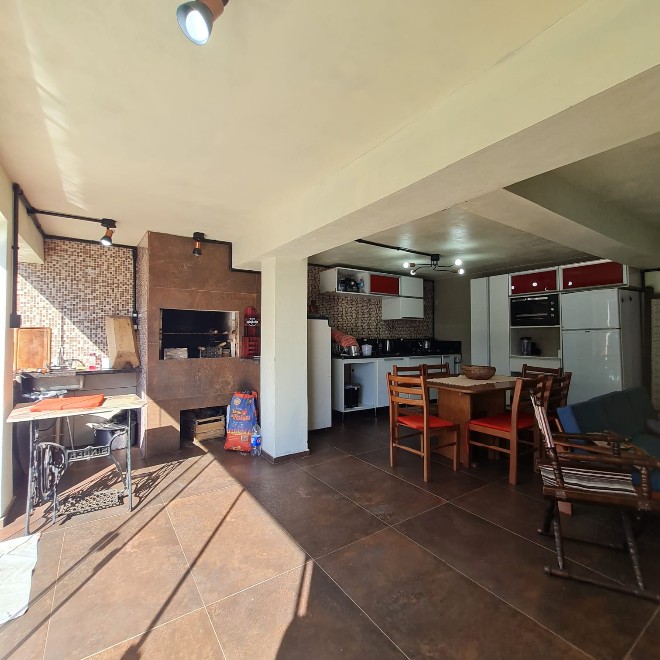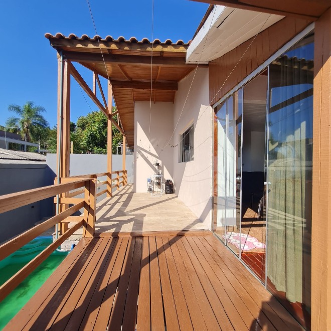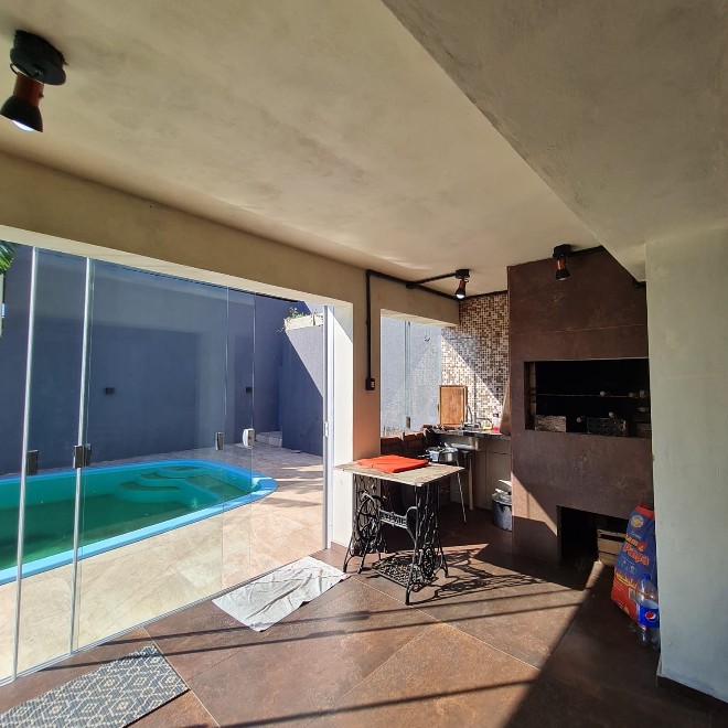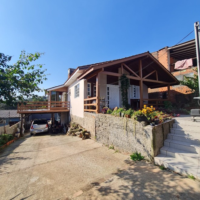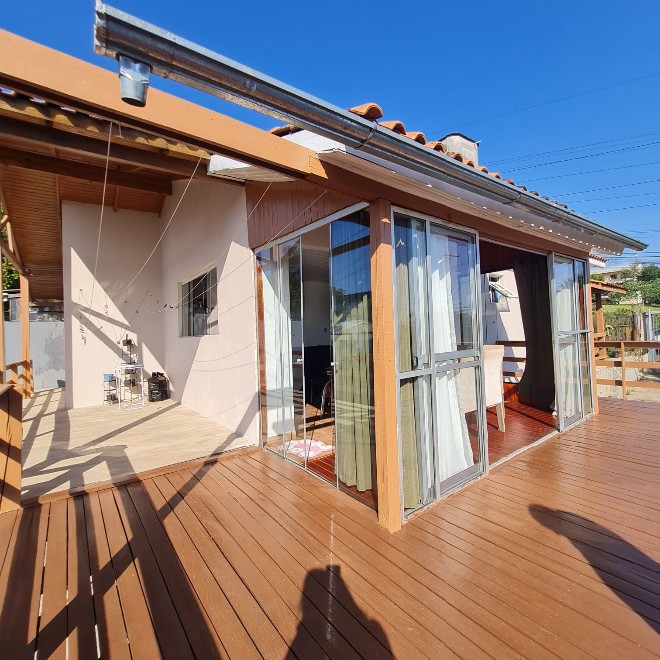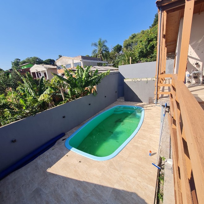 Casa com 162m², ótimo acabamento, com varanda e deck em madeira que proporciona uma linda vista! Possui 3 dormitórios, 2 banheiros, sala de jantar e estar integradas, área de serviço e despensa. Ampla garagem com capacidade para 2 carros e espaço para mais dois no pátio. O terreno possui 339m², sendo todo murado. Piscina com metragem de 8×4 e aconchegante quiosque com churrasqueira. Apta à financiamento bancário. Avalia sítio em Lomba Grande na negociação.