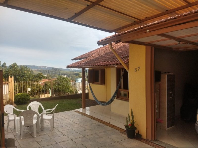 Casa em alvenaria de 139,63m², com 3 dormitórios, banheiro social, cozinha, sala de estar, área de serviço, despensa, sacada, garagem, portão eletrônico, poço artesiano.