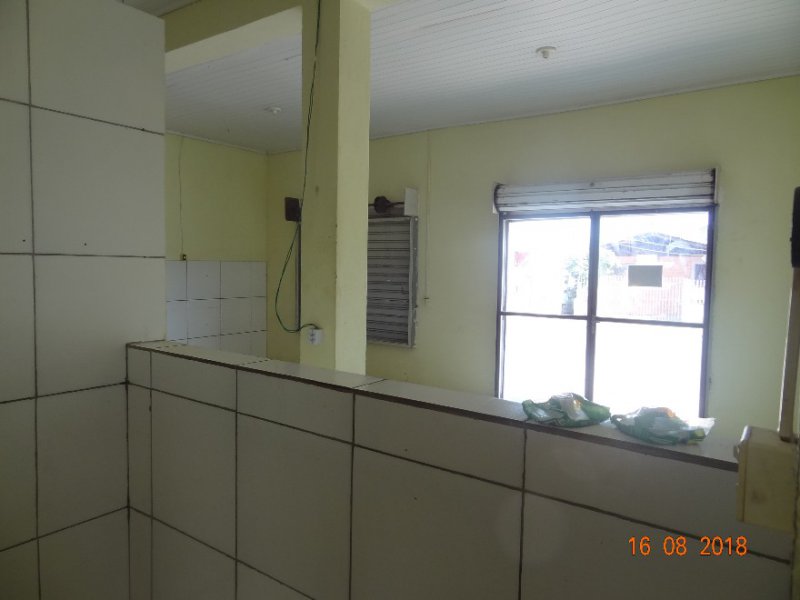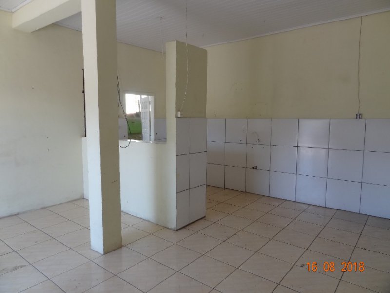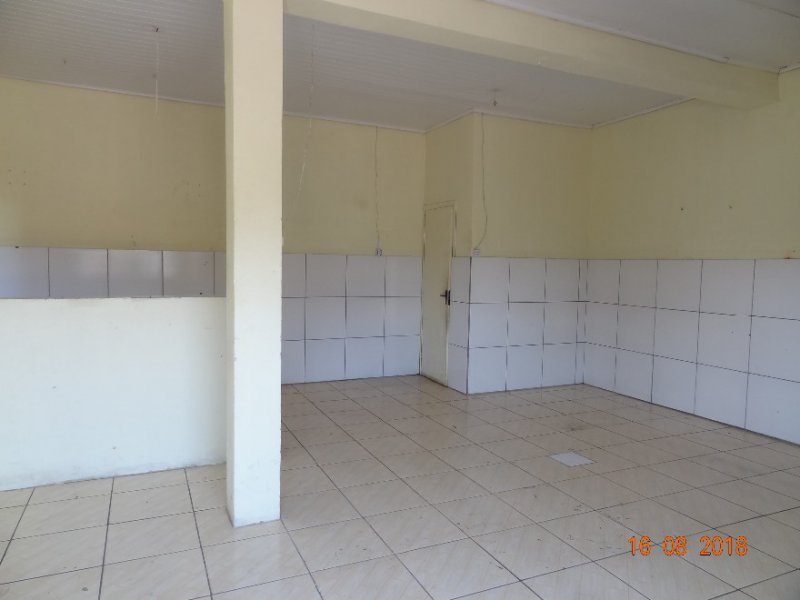 Chalé com 4 quartos, cozinha,banheiro, sala, garagem. Nos fundos, uma peça de 60 metros quadrados com banheiro, de alvenaria. Na frente, sala comercial de alvenaria, com banheiro, medindo 41 metros quadrados.