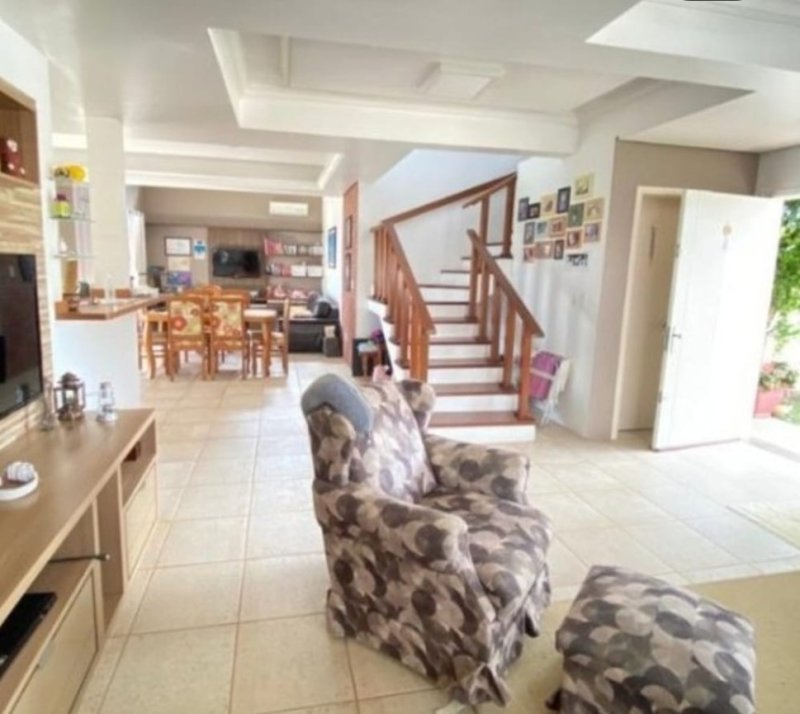 Casa com metragem de 300m², sala de estar e jantar em conceito aberto, cozinha estilo americana. Banheiro social, sacada com churrasqueira.