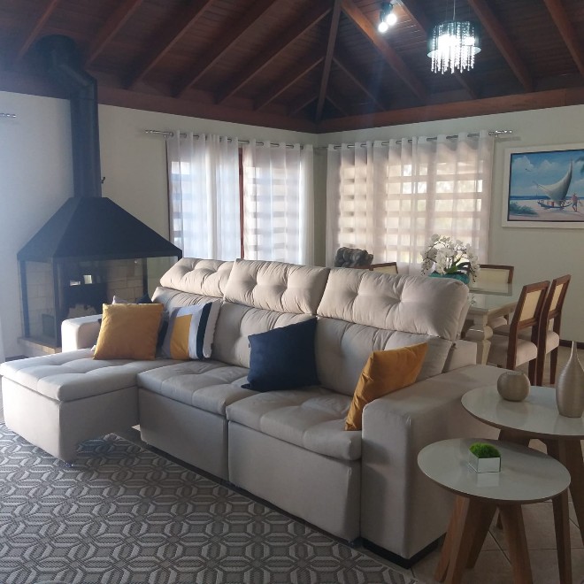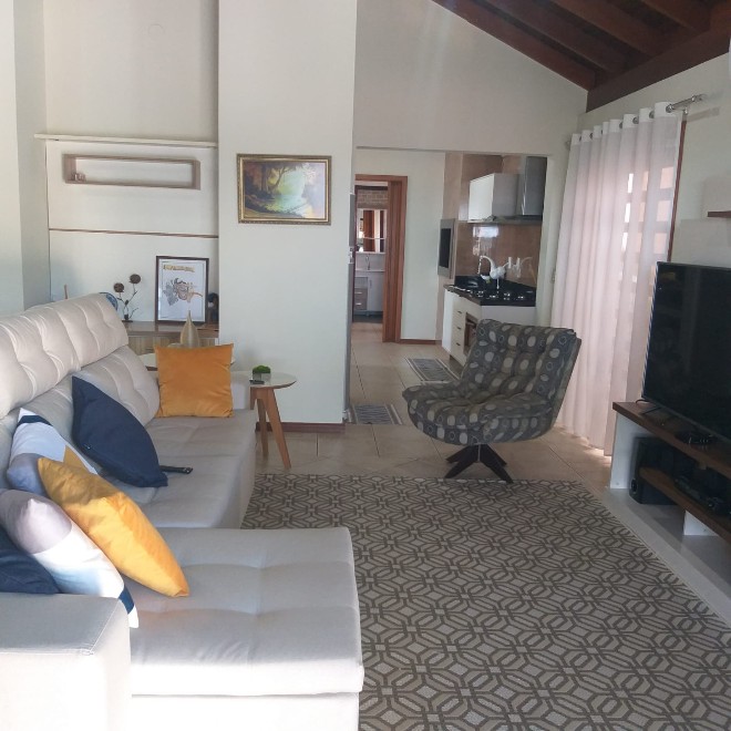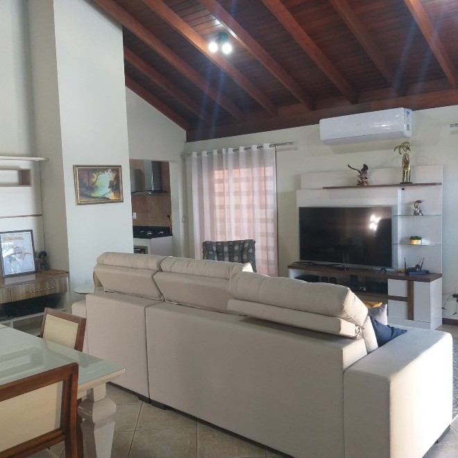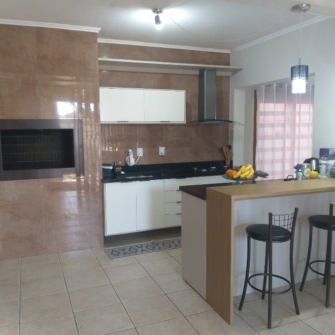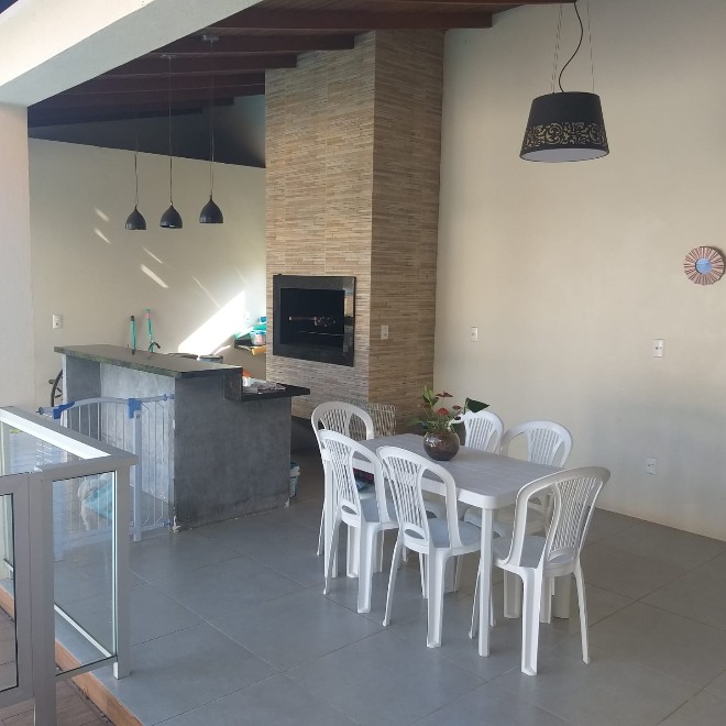 Casa com 204 m², 3 dormitórios, ampla sala, cozinha social e cozinha privada. Piscina com quiosque. Terreno com 585m² com vista privilegiada do por do sol.