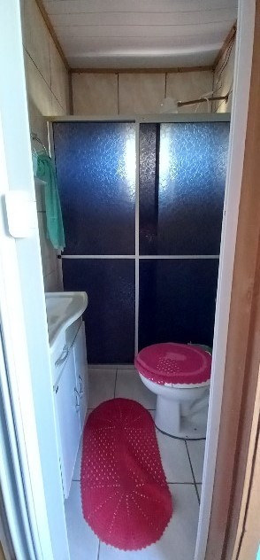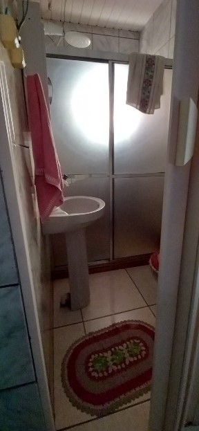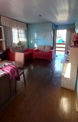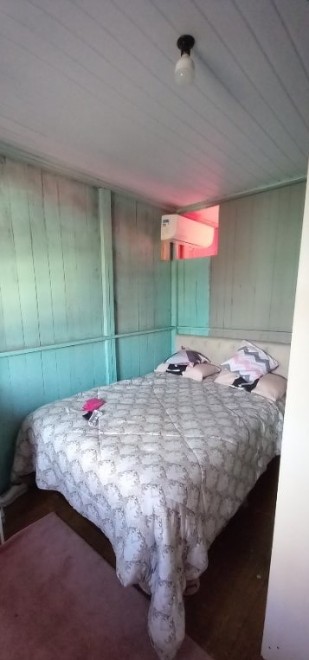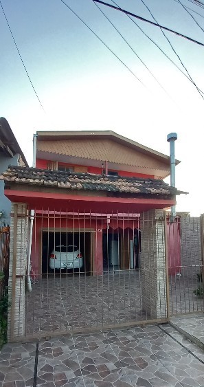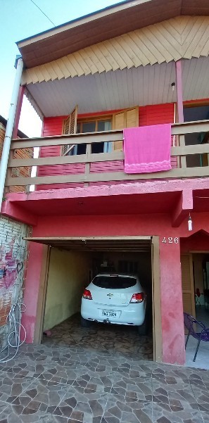 Casa mista de 2 andares, casa de alvenaria com  área coberta para carro, pátio na frente, 2 dormitórios, sala e cozinha integradas, banheiro e lavanderia. Casa de madeira  com 2 dormitórios, sala e cozinha integradas e banheiro.