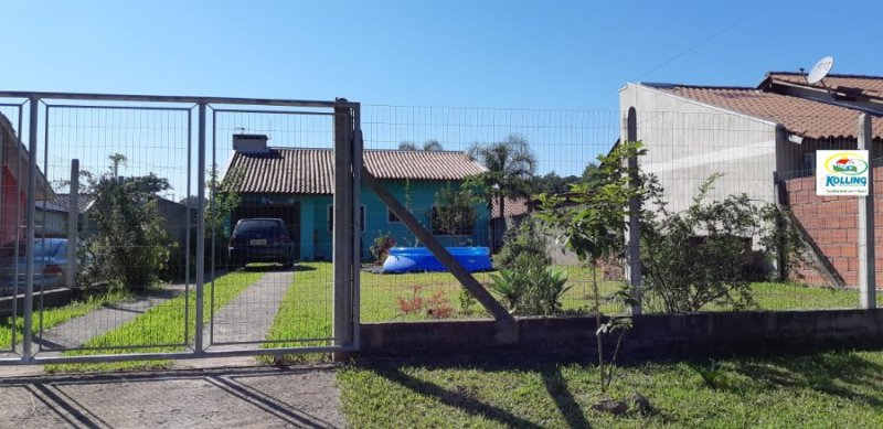 Casa em alvenaria em terreno de 301m2, todo cercado, possui 1 dormitório, sala, cozinha, banheiro social, garagem com churrasqueira. Bem localizada, próxima ao centro de Lomba Grande.