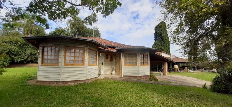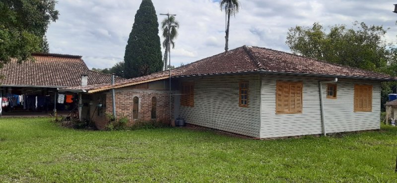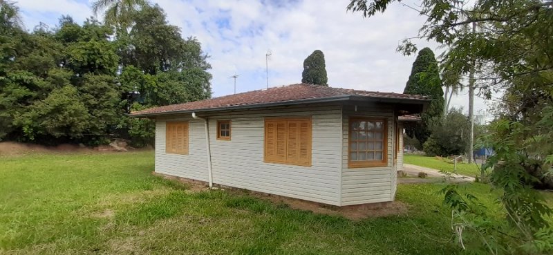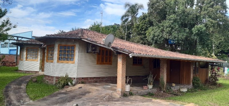 Casa mista de 154m² com 3 dormitórios, cozinha americana, sala de estar/jantar, banheiro, varanda com lavanderia, churrasqueira, garagem. Casa 2 de alvenaria com 321m², 2 salas, cada uma com um banheiro. Terreno de 2291m², sendo 33 metros de frente para a rua principal de Lomba Grande.