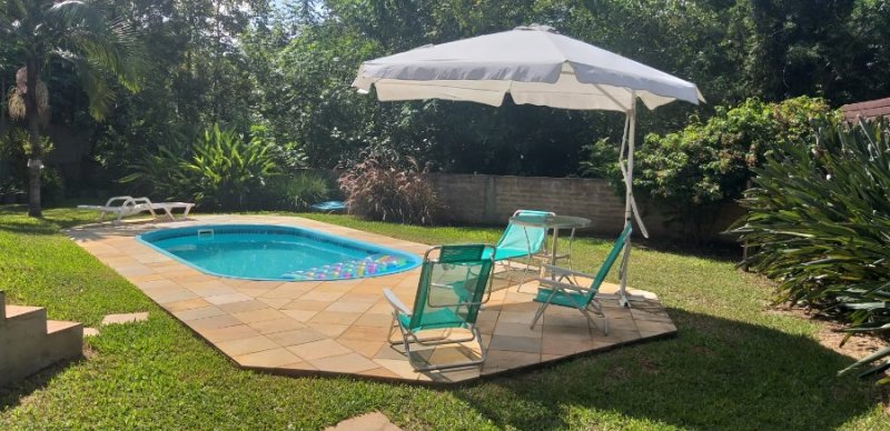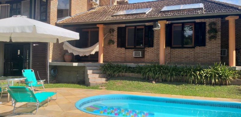 Casa com 4 dormitórios, sendo um deles suíte master. Estrutura com paredes duplas de tijolos maciços. Ótima iluminação natural. Pátio com piscina totalmente fechado e privativo. Garagem para 3 carros. Localizada na região central de Lomba Grande. Venha conhecer!