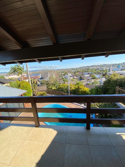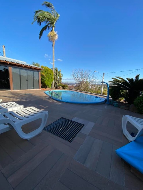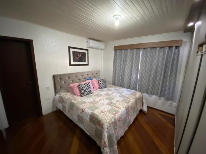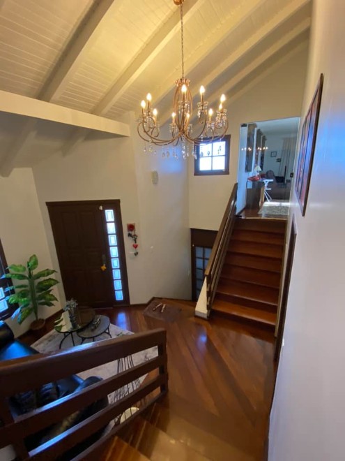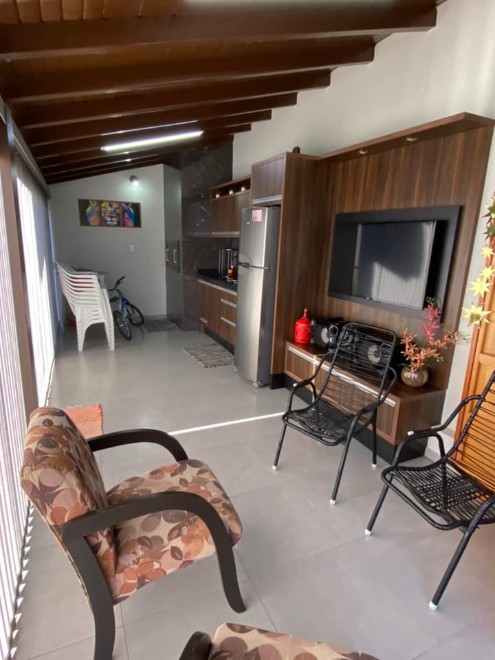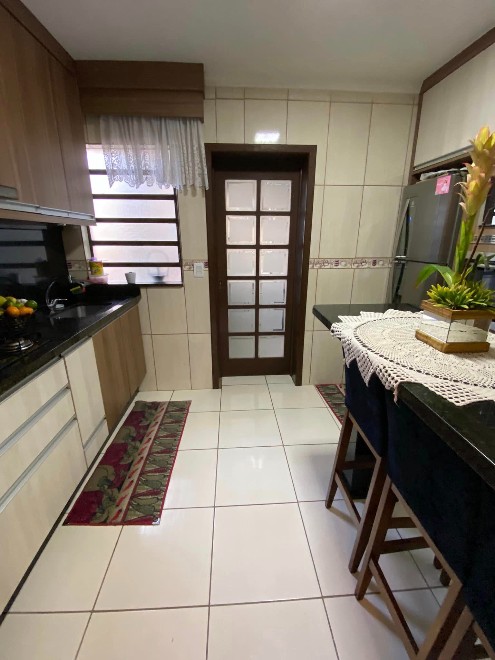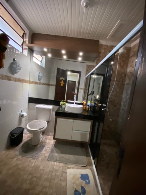 Casa de esquina com 2 quartos, 1 suíte, hall de entrada,3 banheiros, 2 salas, cozinha, lavanderia, sacada com uma vista linda, despensa, garagem para 2 carros, quiosque novo, piscina com cascata, sótão e canil. Os móveis planejados ficam na casa. Possibilidade de receber imóvel ou veículo na negociação.