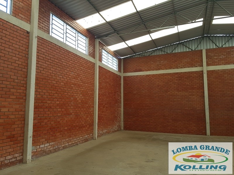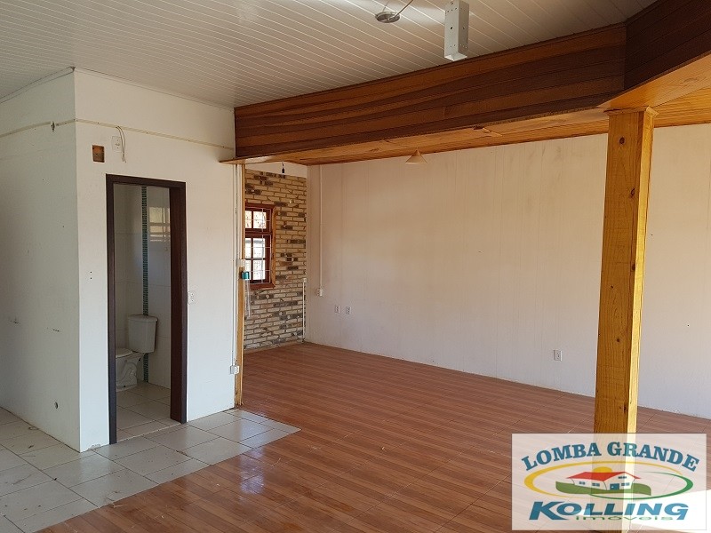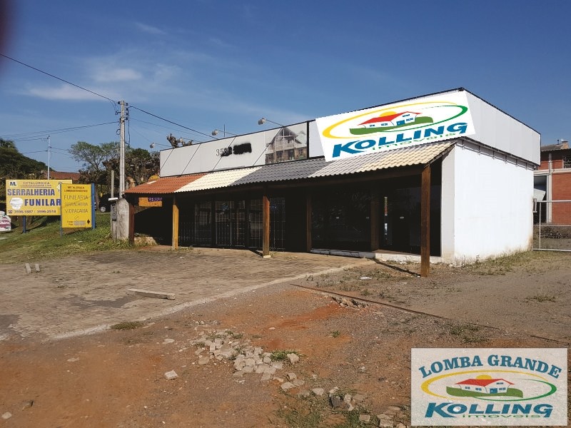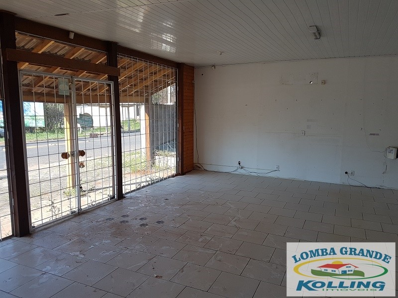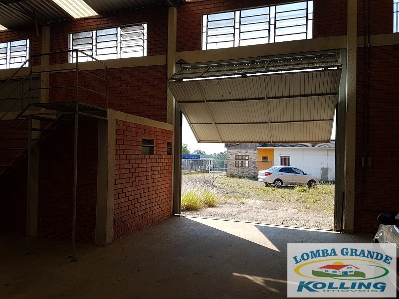 Ótimo ponto comercial. Excelente área de 1.000 m², na zona central de Lomba Grande. Com loja de 91 m², envidraçada e na parte frontal da rua principal do bairro. Pavilhão com 266 m², telhado em alumínio, com pé direito de 6 m. Com local para escritório, banheiro e cozinha.