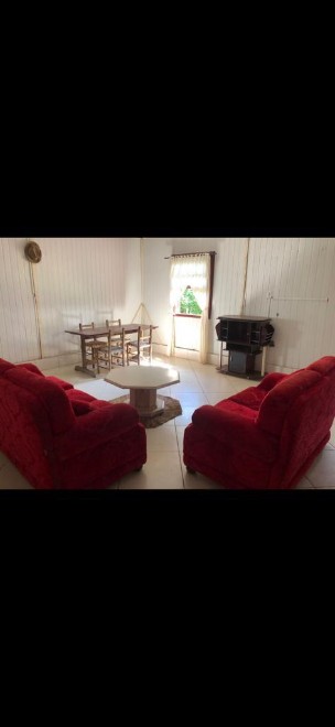 -Casa com 3 quartos, banheiro, sala de estar/jantar, cozinha ampla com fogão a lenha, varanda.