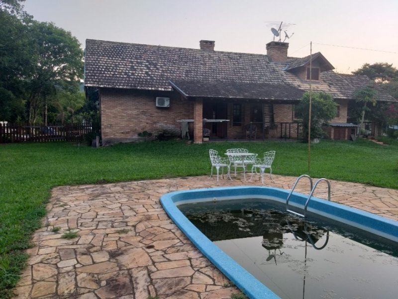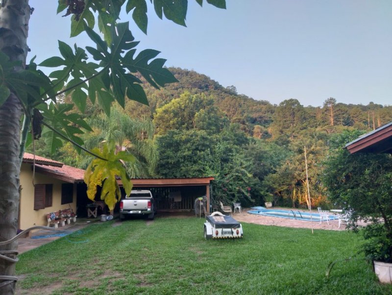 Sítio em excelente localização, casa principal com 197m², 4 dormitórios sendo 2 suítes. Sala de estar, de jantar, varanda, piscina, mata nativa e arroio. Segunda casa de 100m² com garagem cozinha ampla, 1 quarto e banheiro.