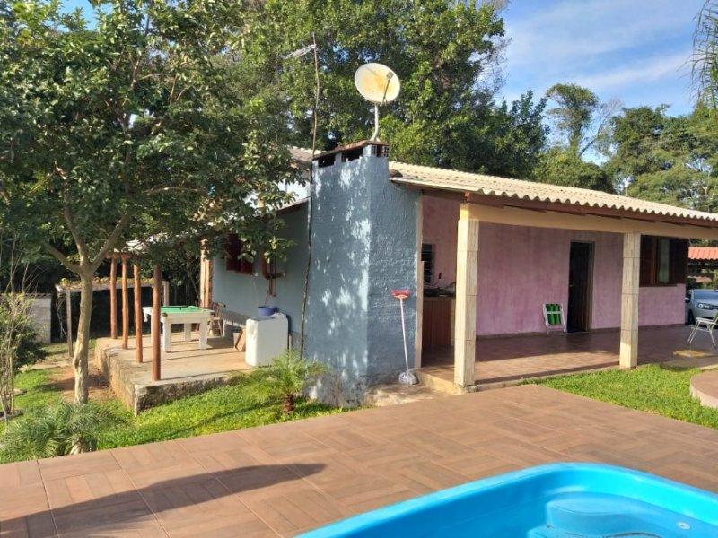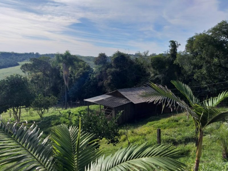 Lindo sítio de 5.336 m² com casa de 120m², 3 dormitórios, área com churrasqueira, piscina, galpão, mata nativa, frutíferas, muro de pedra, poço artesiano e luz trifásica.