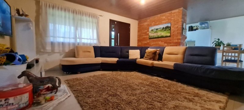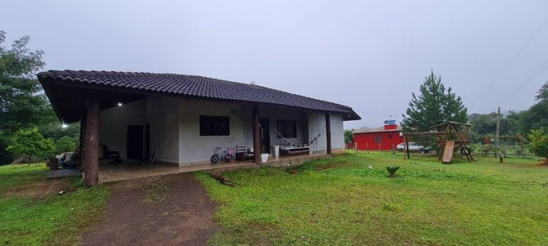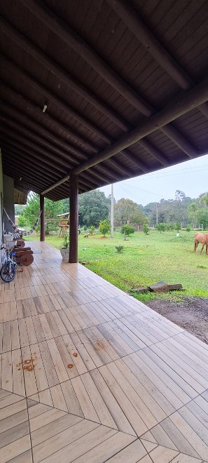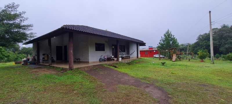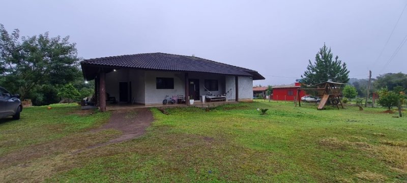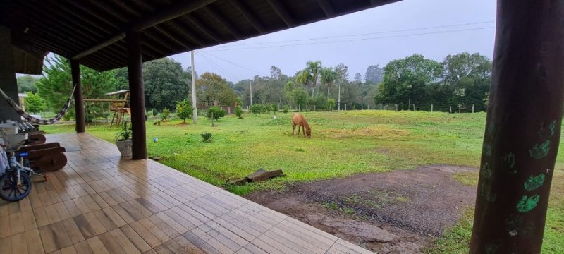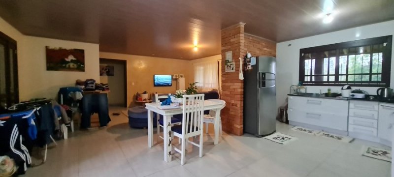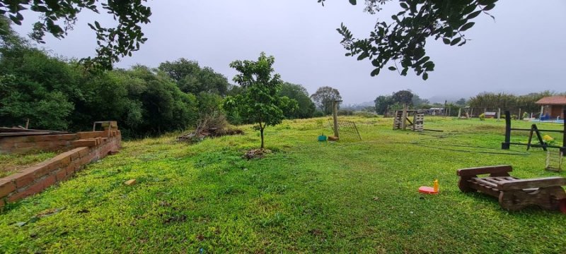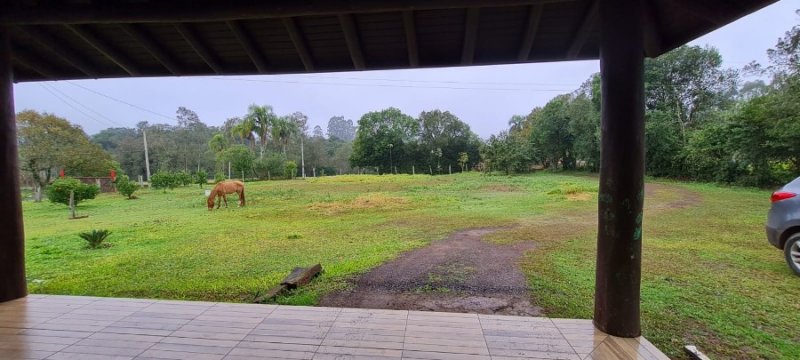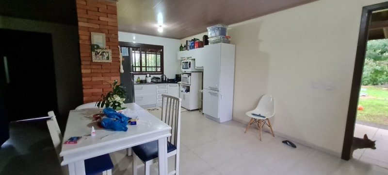 Sítio plano, com casa em alvenaria, avarandada, sala de estar e jantar em conceito aberto, banheiro social, 2 dormitórios, sendo um com suíte, closet, lavanderia e garagem. Local tranquilo e seguro, aproximadamente 4,5 km do centro do bairro. Estuda a possibilidade de permuta por casa no centro de Lomba Grande, de menor valor.