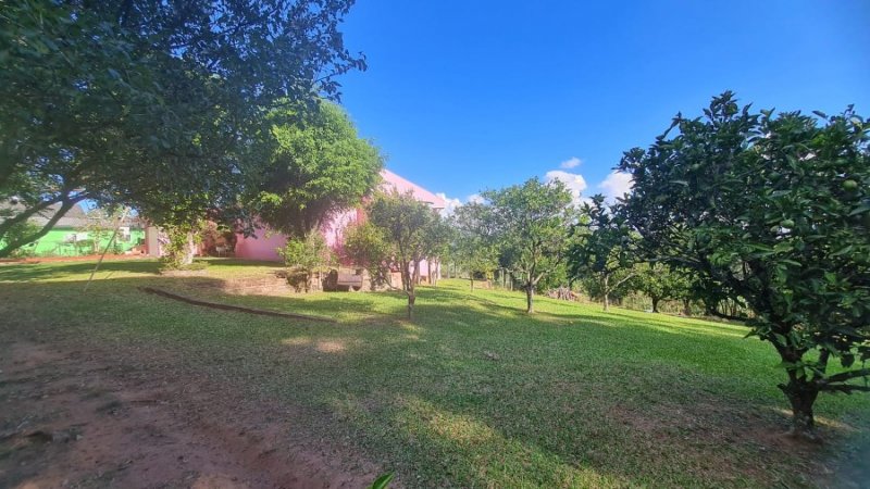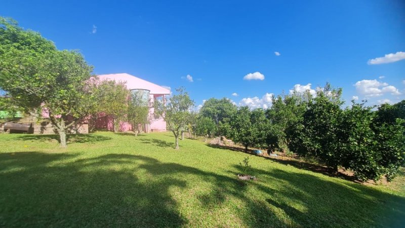 Sítio com casa em alvenaria, área construída 120m²,  cozinha e sala de jantar integradas, despensa, sala de estar ampla, com dois ambientes, 3 dormitórios, sendo um com suíte, banheiro social. Possui garagem com lavanderia e banheiro. Conta também com um espaçoso porão, com banheiro.  Possui uma variedade grande de frutíferas, área cultivável e galpão para criação. Apenas à 600 metros do asfalto.  Avalia permuta por casa no centro de Lomba Grande.