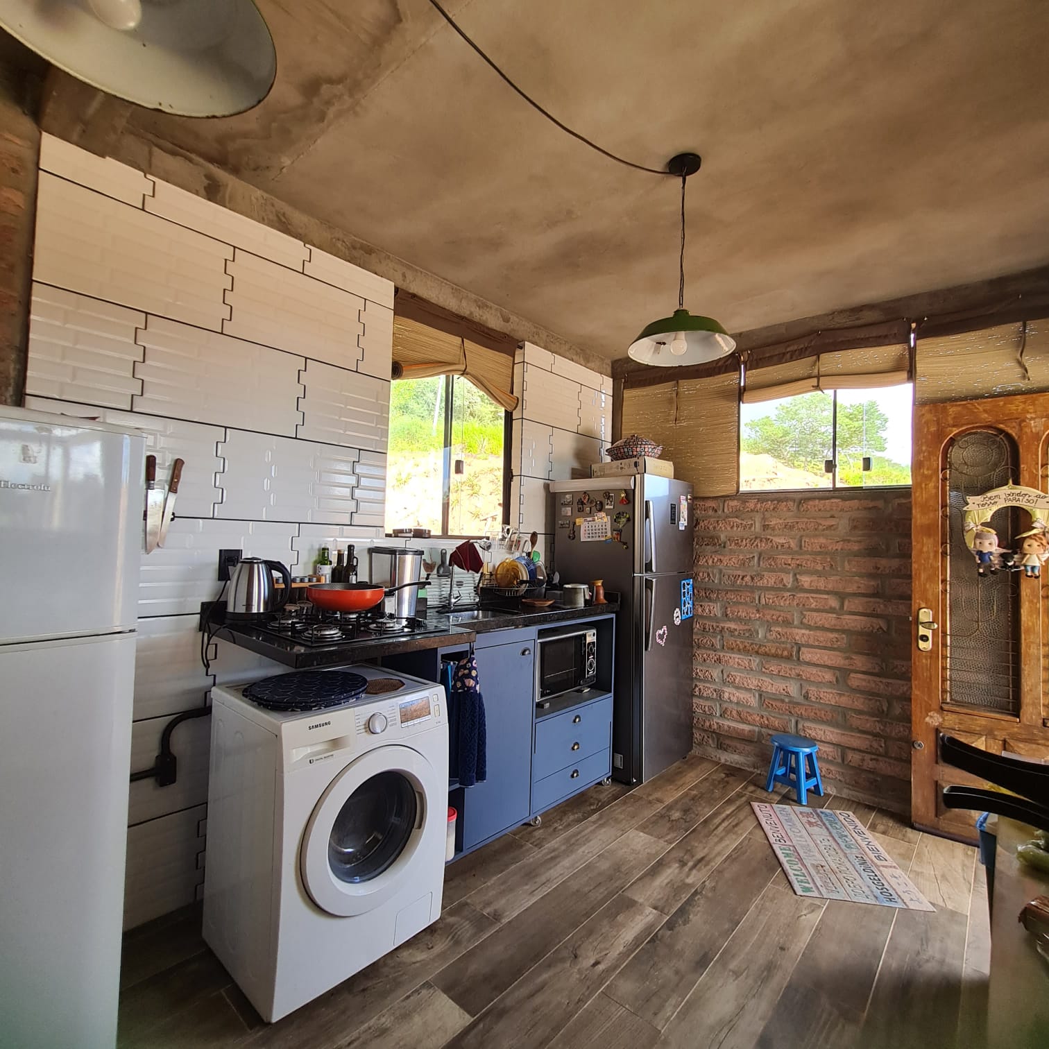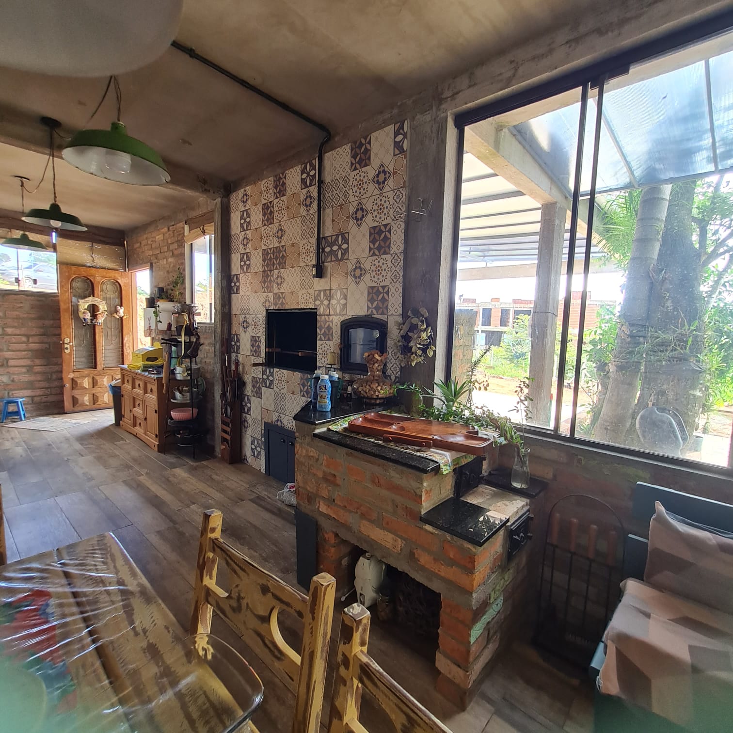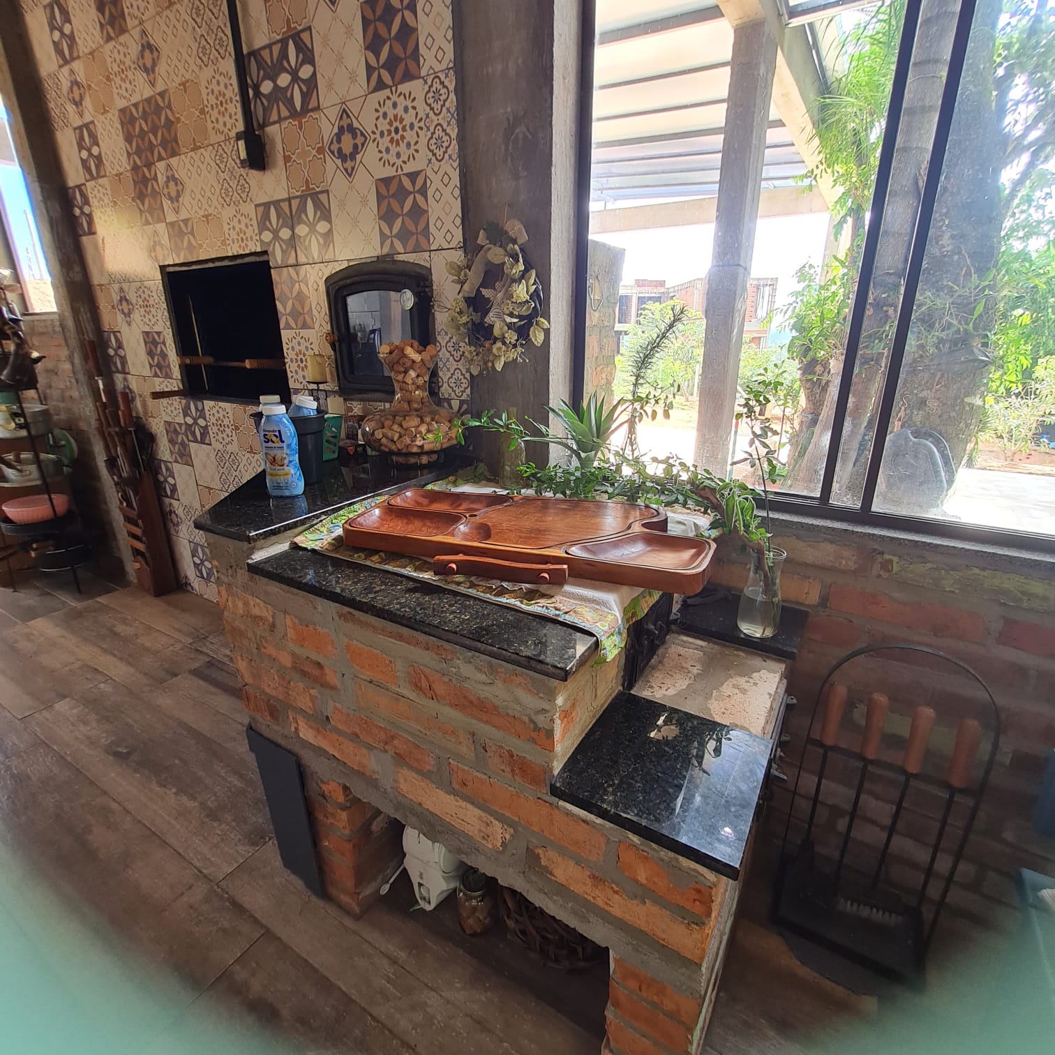 Conta com um dormitório, closet, banheiro, área de serviço e garagem ampla com churrasqueira.