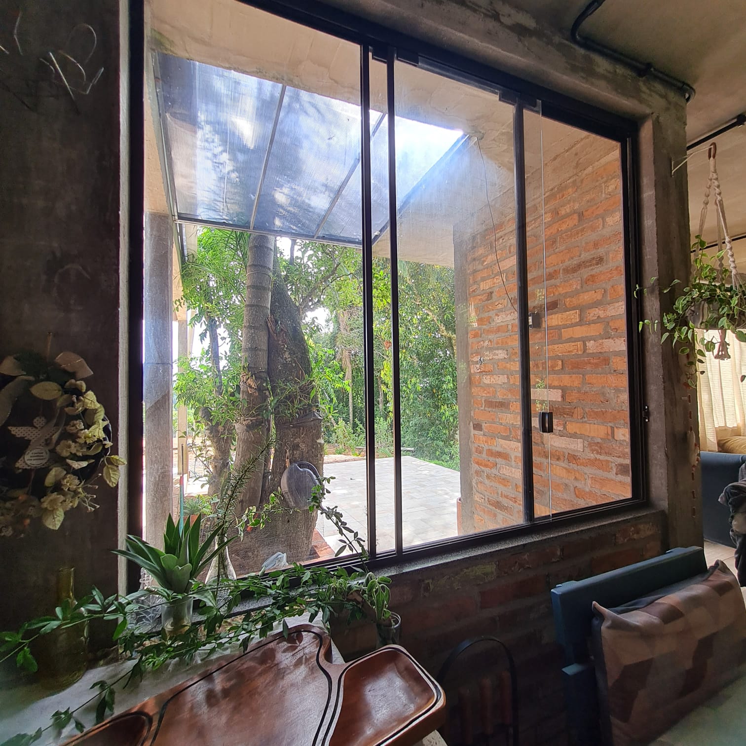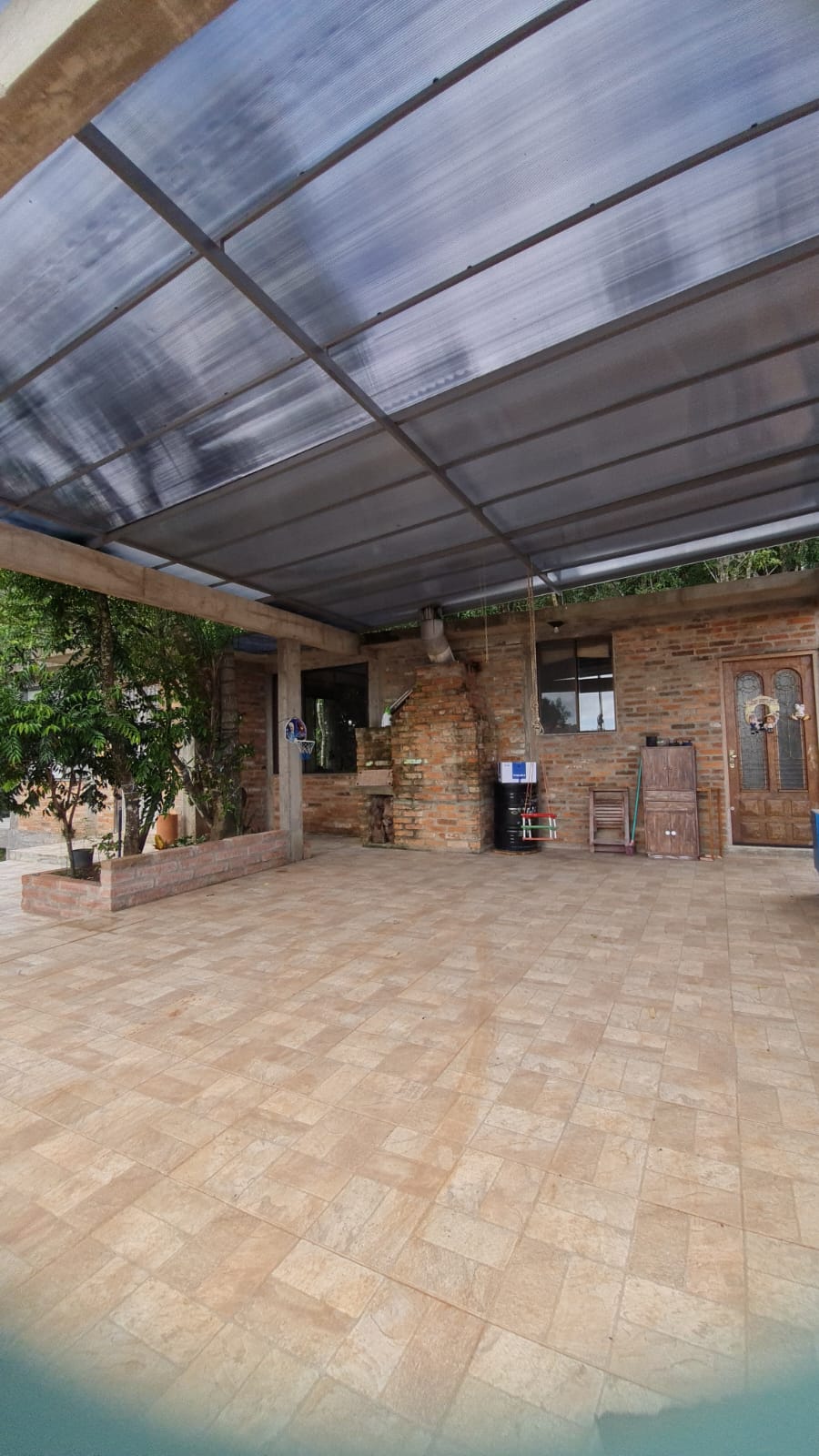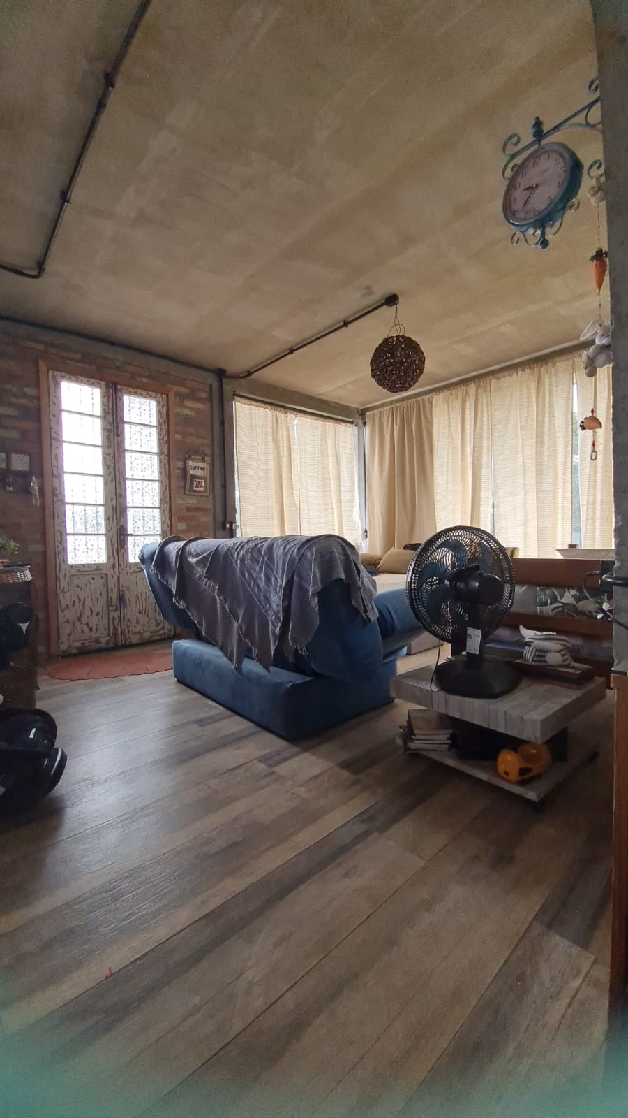 Conta com um dormitório, closet, banheiro, área de serviço e garagem ampla com churrasqueira.