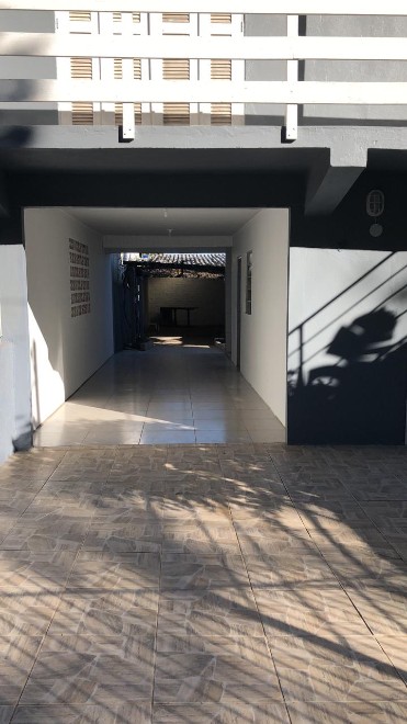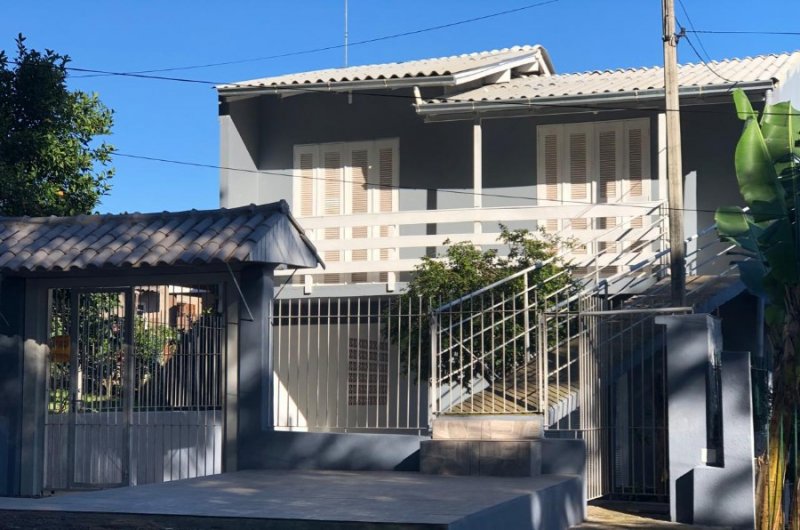 Sobrado com aproximadamente 150m², possui dois quartos, dois banheiros, cozinha, sala de jantar e estar e área de serviço.  Possui garagem para três carros e um quiosque, com churrasqueira e banheiro. Localizado próximo à mercado e escolas, totalmente cercado. Possibilidade para Aluguel