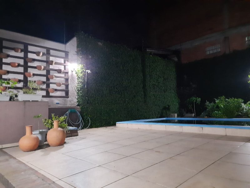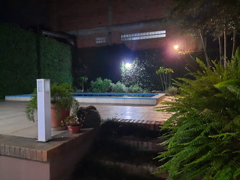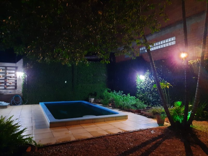 Possui um aconchegante jardim com piscina e iluminação noturna.