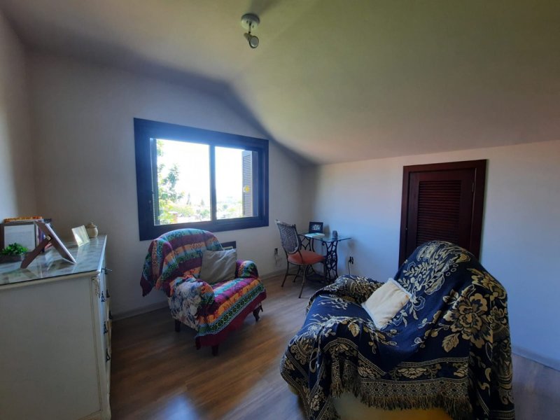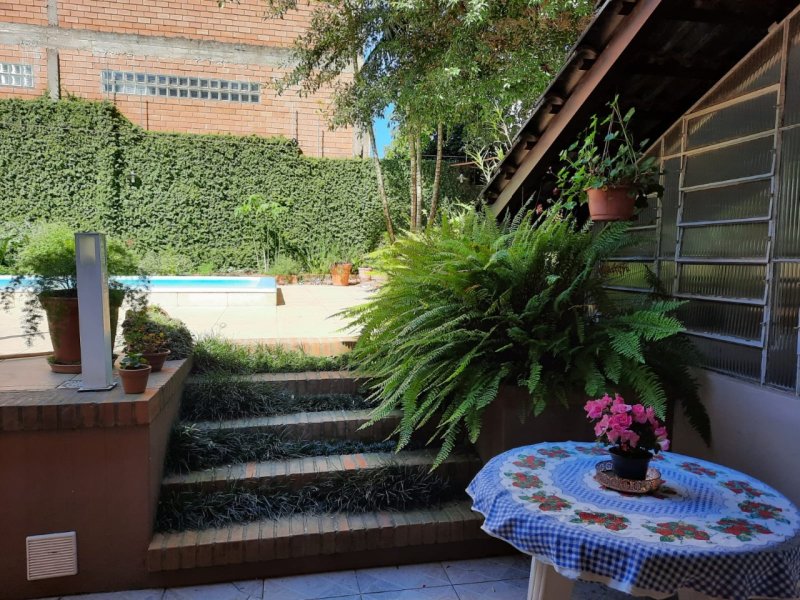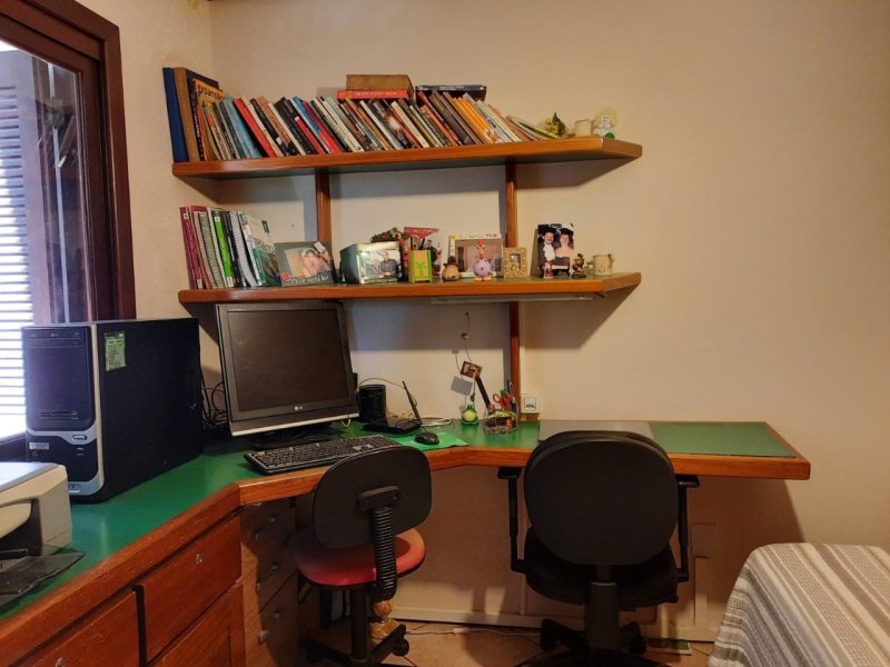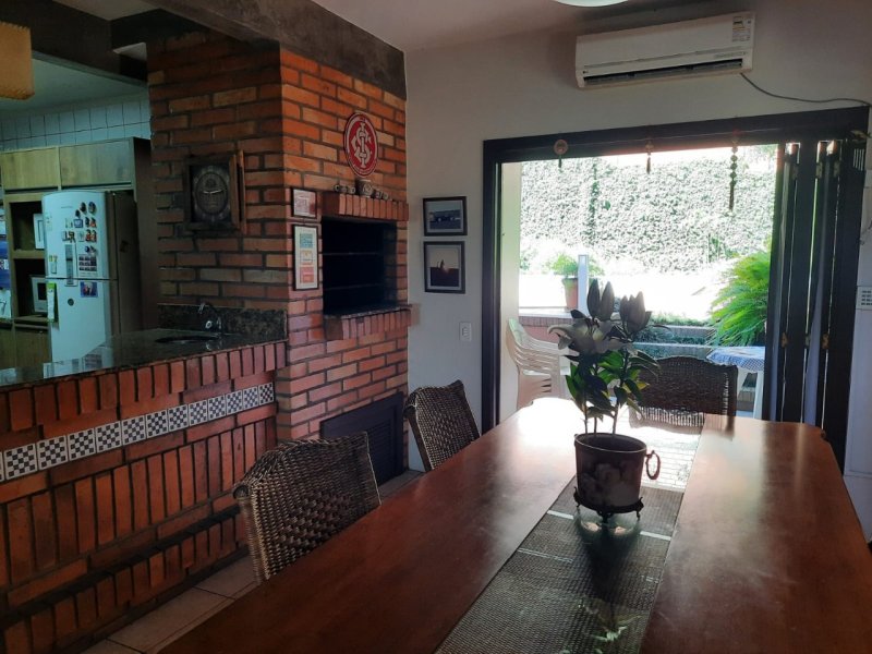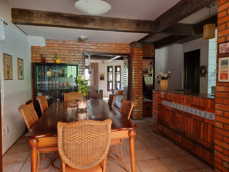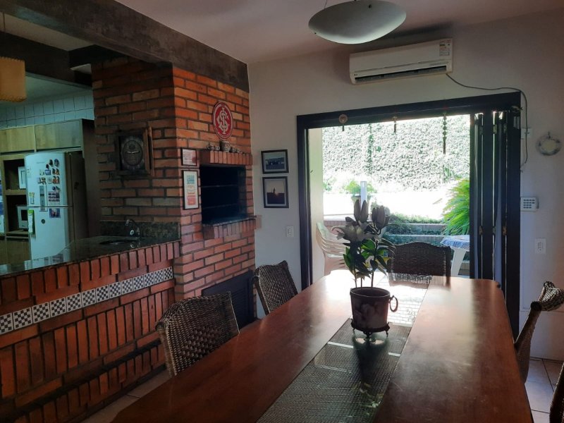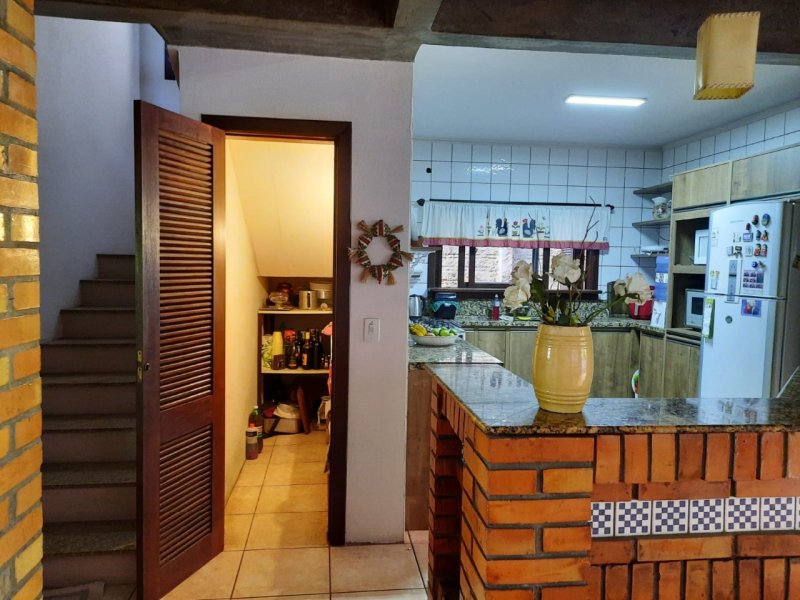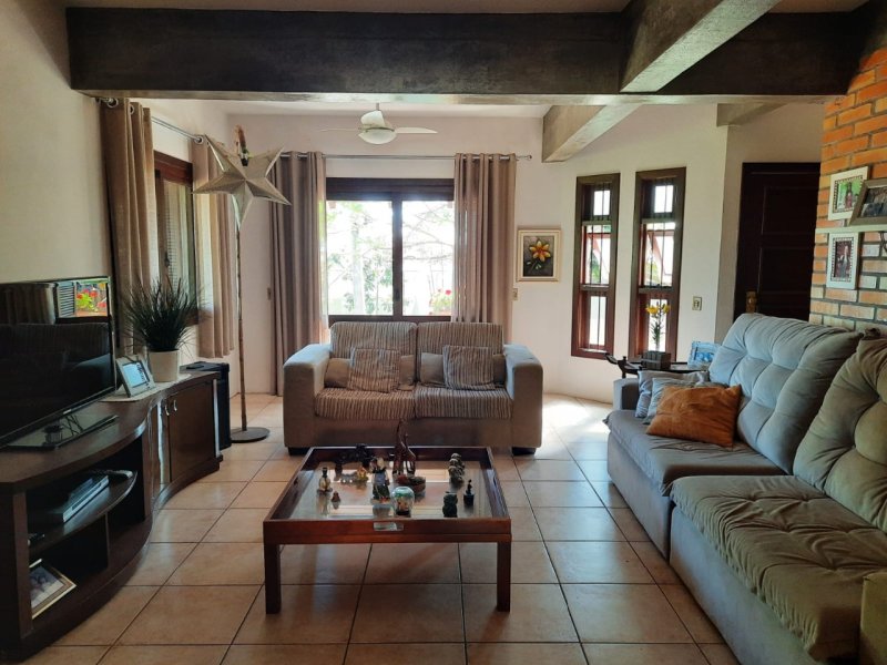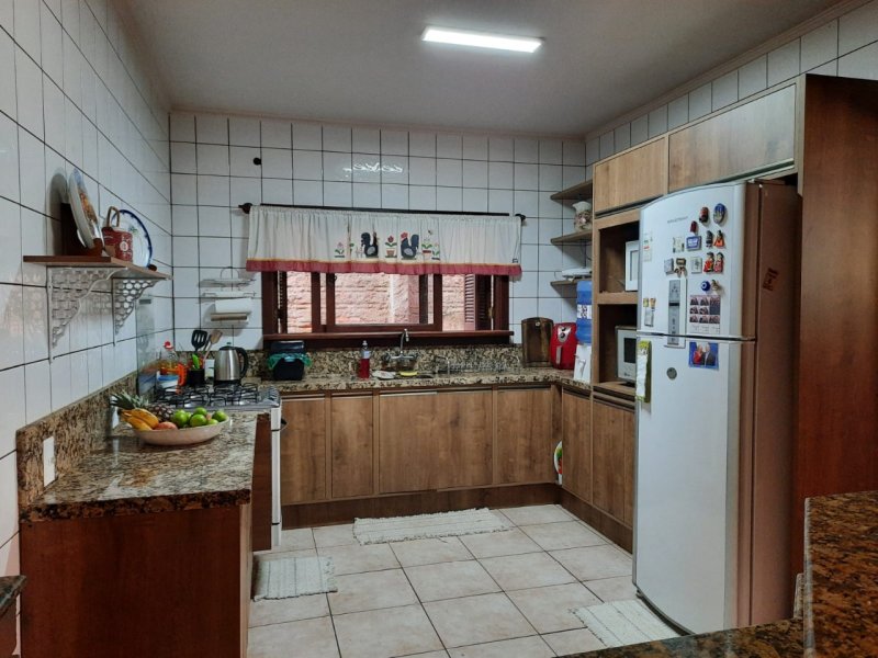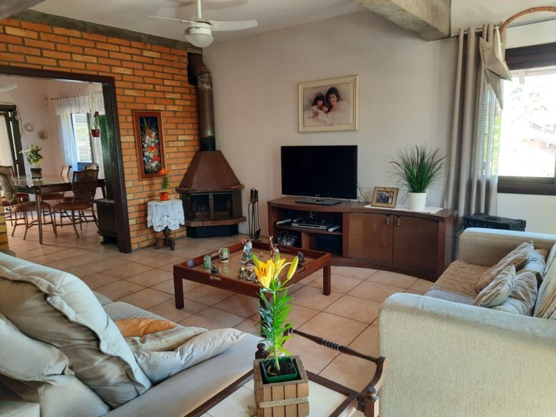 Sobrado amplo, com 217m², possuindo 4 dormitórios, sendo 1 suíte, home office, banheiro social, lavabo, living de 2 ambientes com lareira, integrados à cozinha americana com churrasqueira.