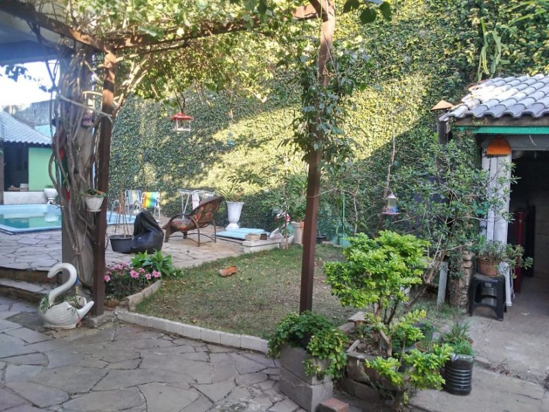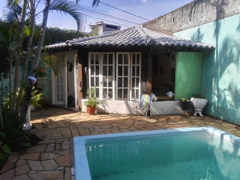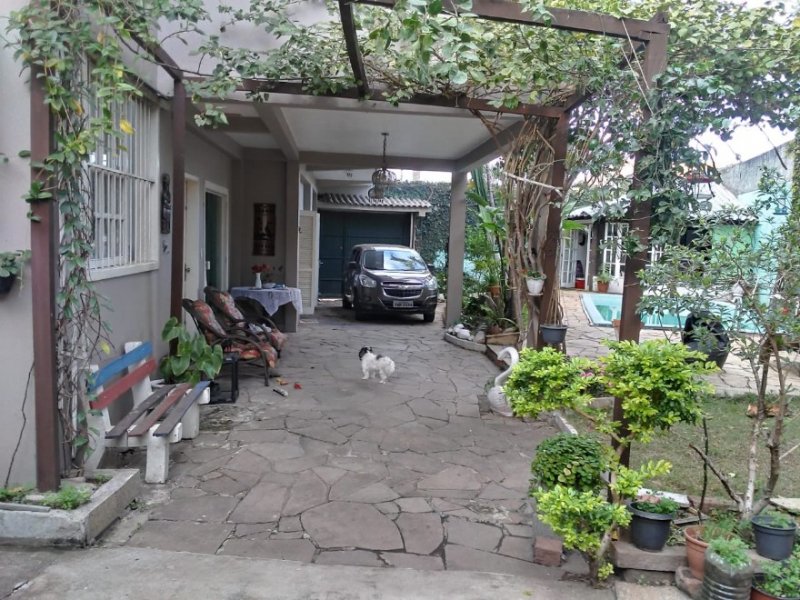 Sobrado com 188m², 2 dormitórios com suítes, banheira de hidro massagem, closets, sauna à vapor instalada, para 6 pessoas, cozinha, sala de jantar e estar com lareira, lavanderia, sistema de gás central, garagem coberta para 2 carros. Terreno com pouco mais de 300m², todo murado, quiosque com piscina e banheiro, churrasqueira, espaço para mais dois carros e ainda um anexo nos fundos para depósito. Local bem seguro e aconchegante! Avalia permuta por casa em Lomba Grande.