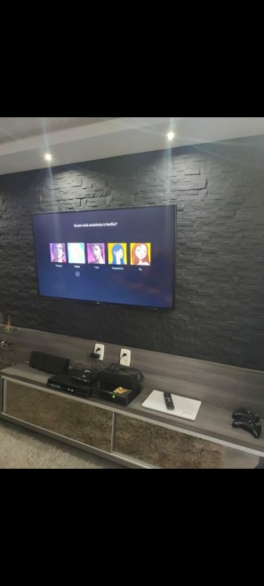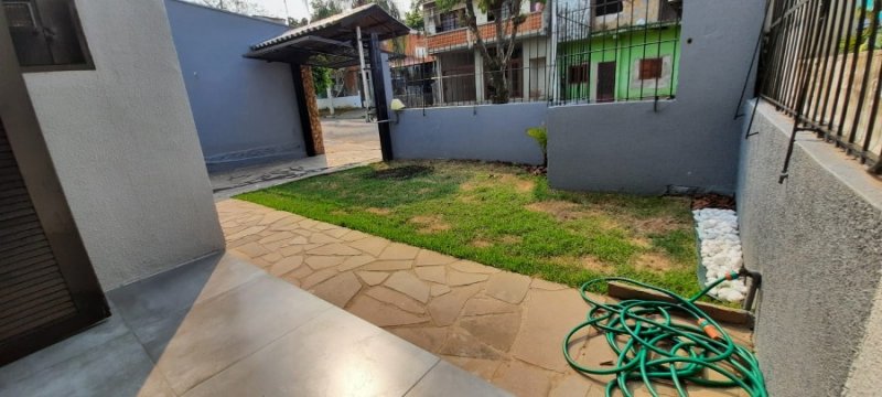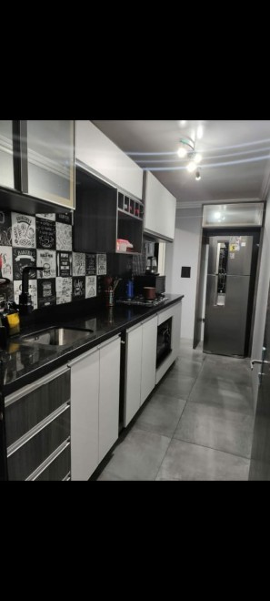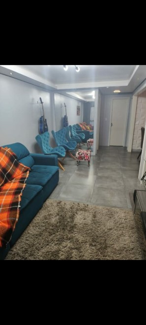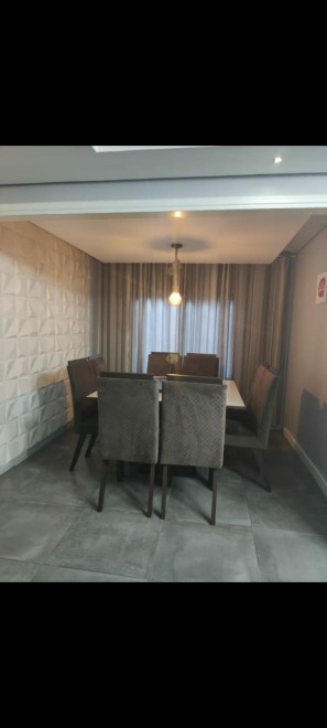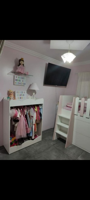 Imóvel tem duas casas, com 2 dormitórios cada. A casa principal com gesso em todos os cômodos, massa corrida e gesso 3D nas paredes, divisória de espelho, semi mobiliada, ficam móveis da cozinha, banheiro, home e roupeiro de casal. Sobrado dos fundos com 2 dormitórios, sala, cozinha, banheiro e sacada.  Garagem para 2 carros