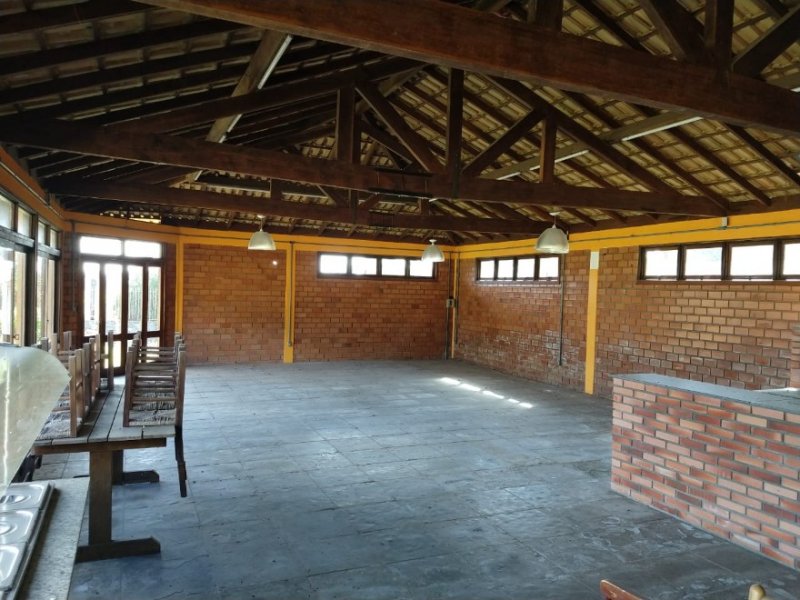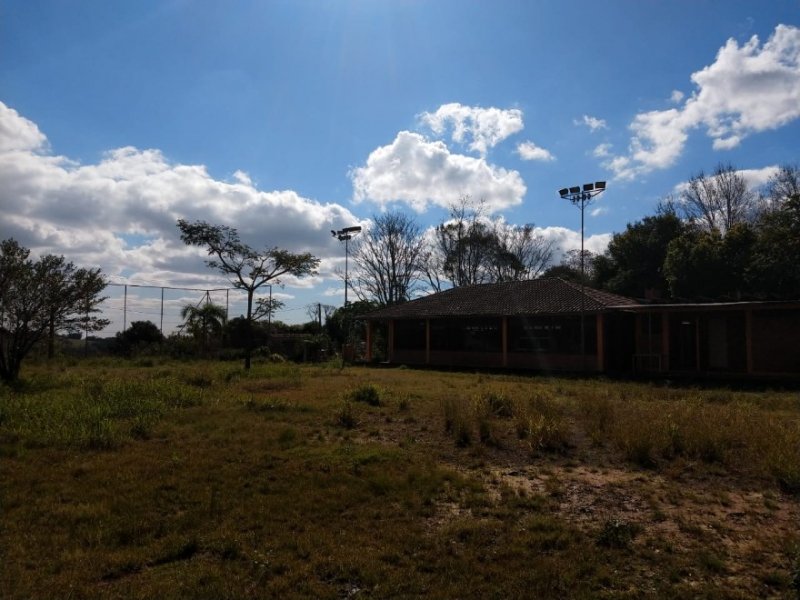 Terreno de 1600m² com prédio comercial, próprio para empreendimento gastronômico, salão de festas com copa, cozinha, 2 banheiros, área para campo de futebol recreativo na região central de Lomba Grande.